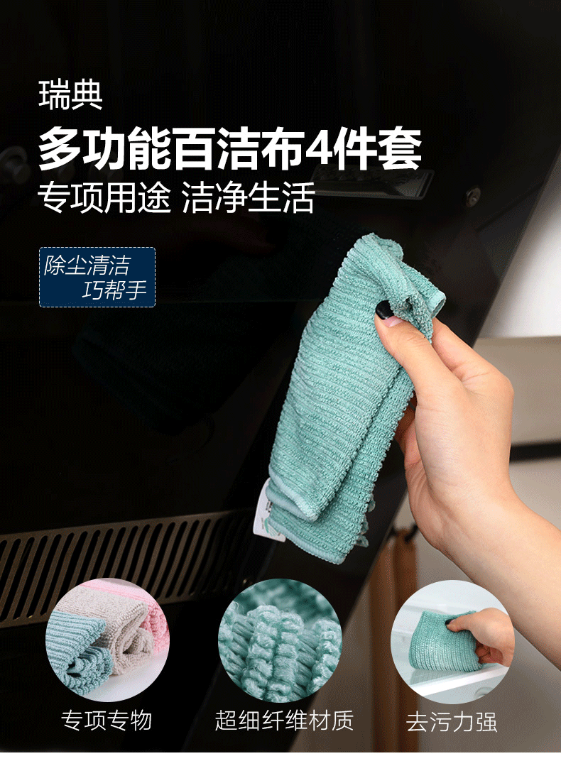 百洁布四件套 粉/绿