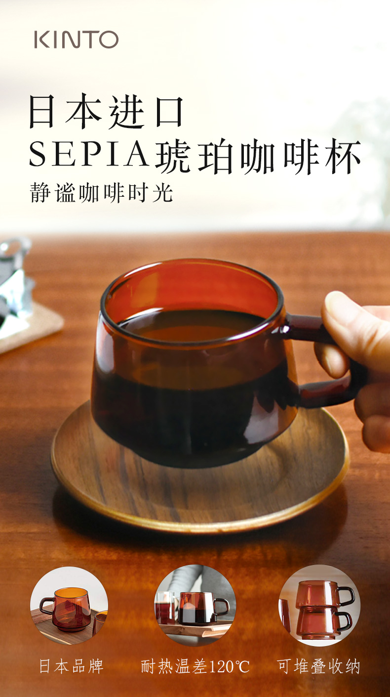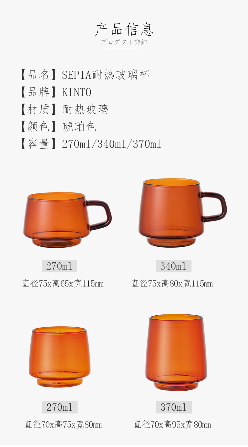 耐热玻璃杯 SEPIA 琥珀色 把手款 340ml
