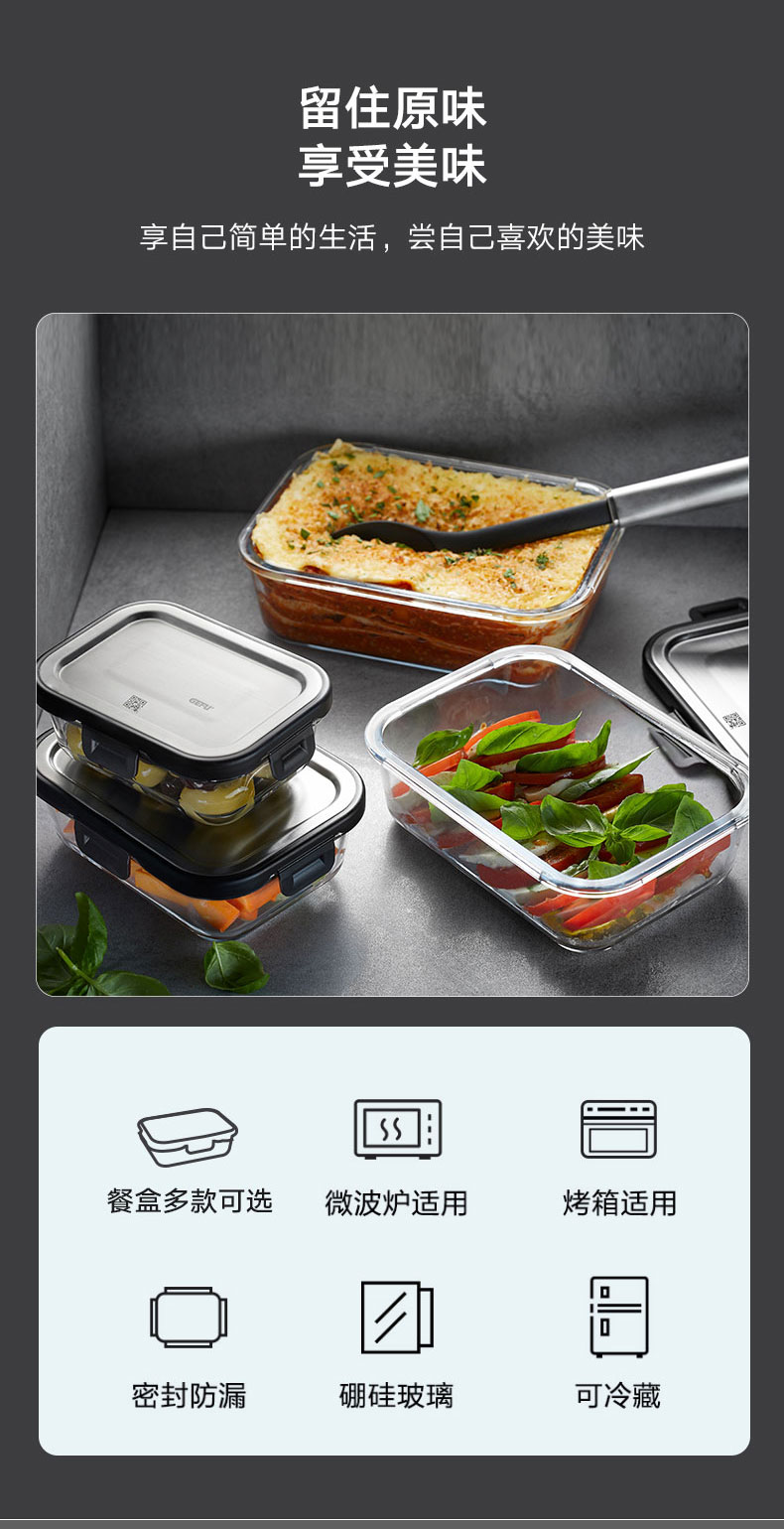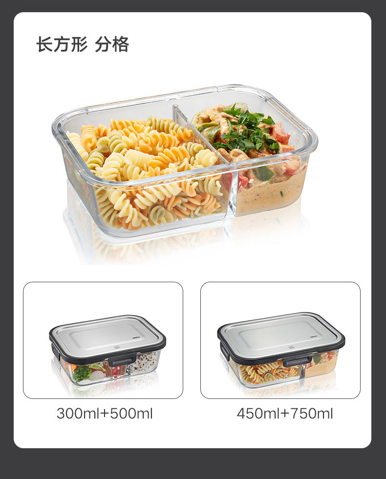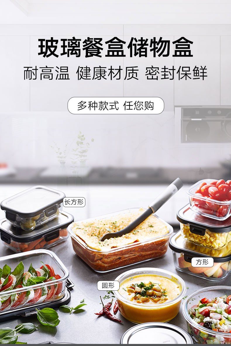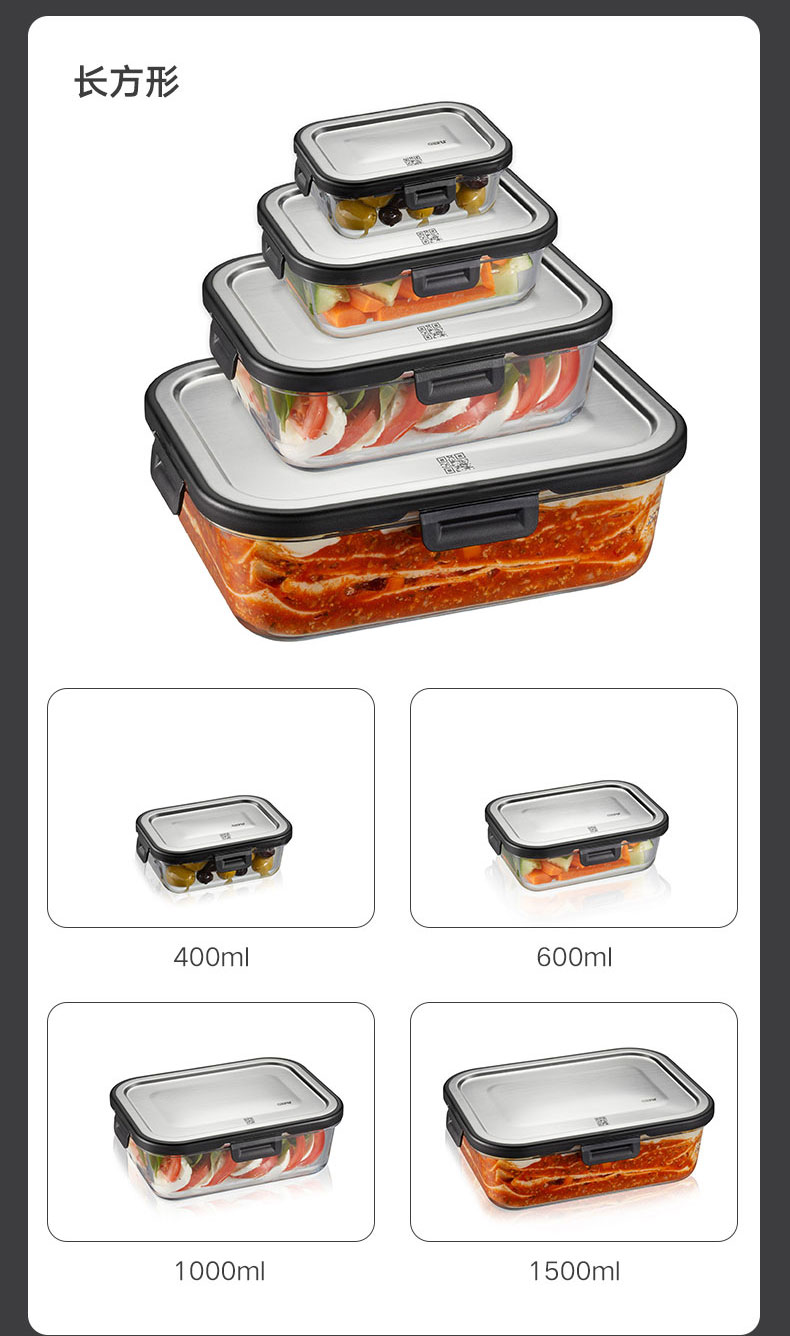 玻璃餐盒储物盒 长方形 1500ml L23.2 * W17.7 * H 7.5 cm