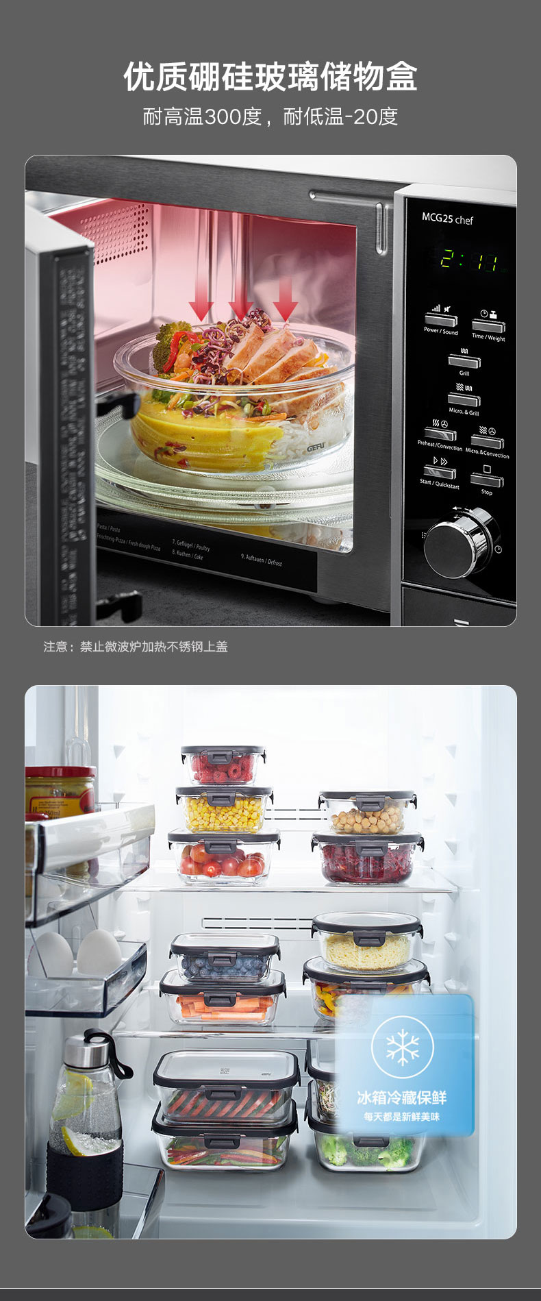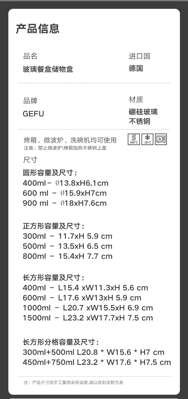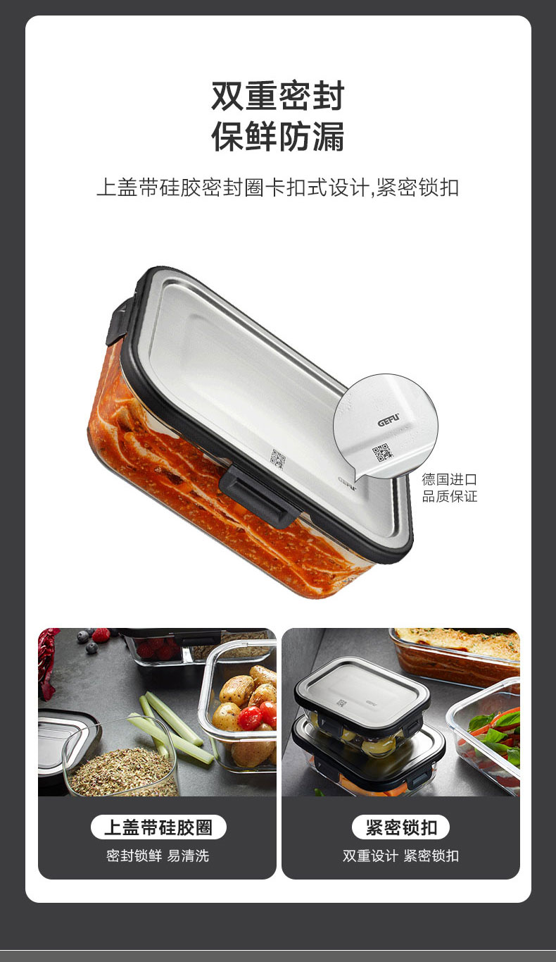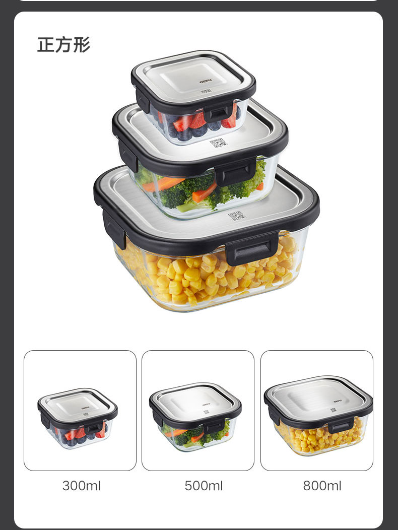 玻璃餐盒储物盒 长方形 1500ml L23.2 * W17.7 * H 7.5 cm