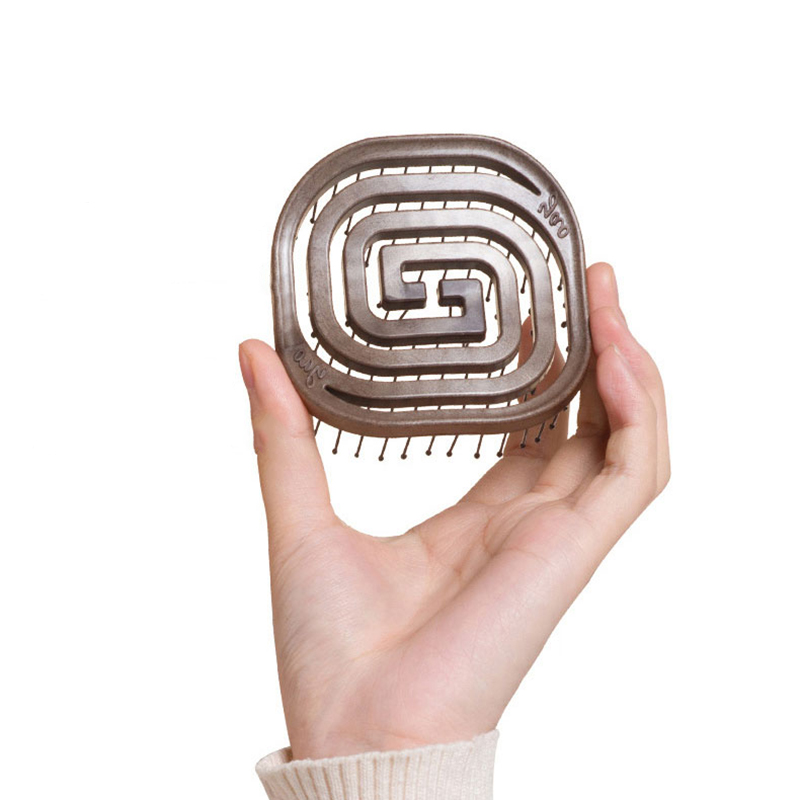 镂空按摩梳 便携猪鬃毛款 木纹棕