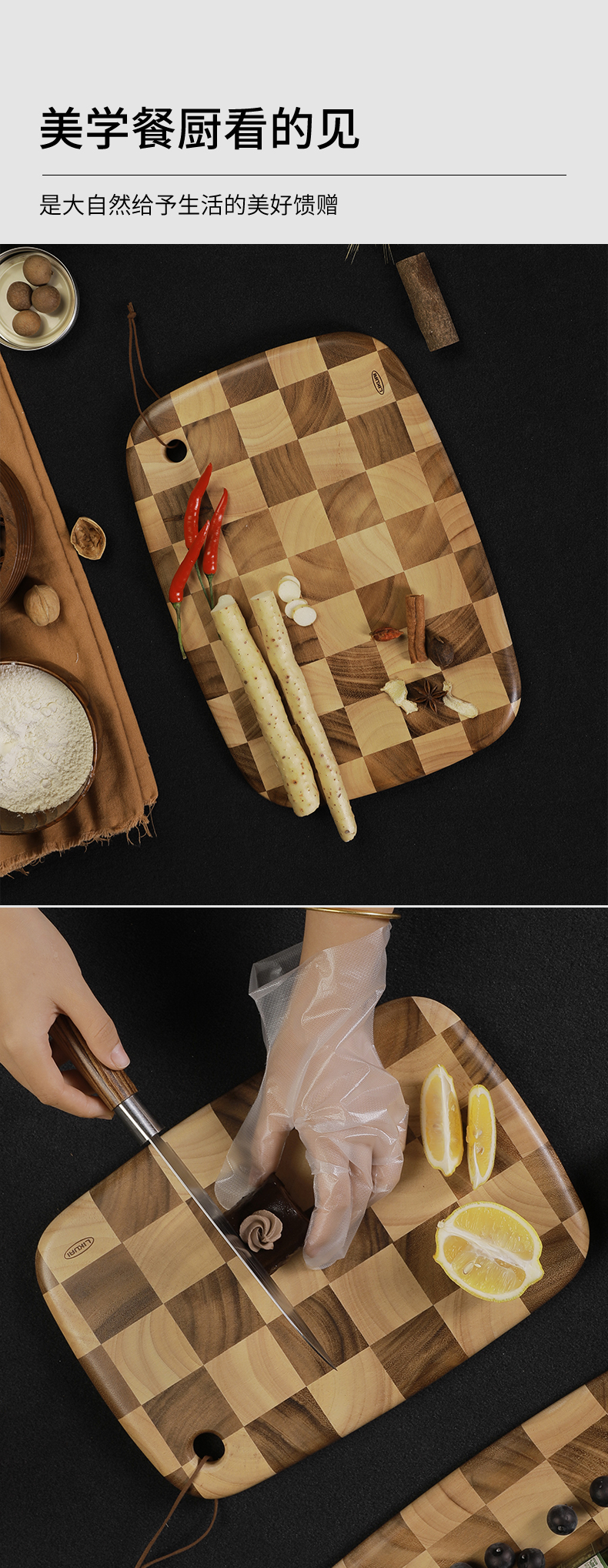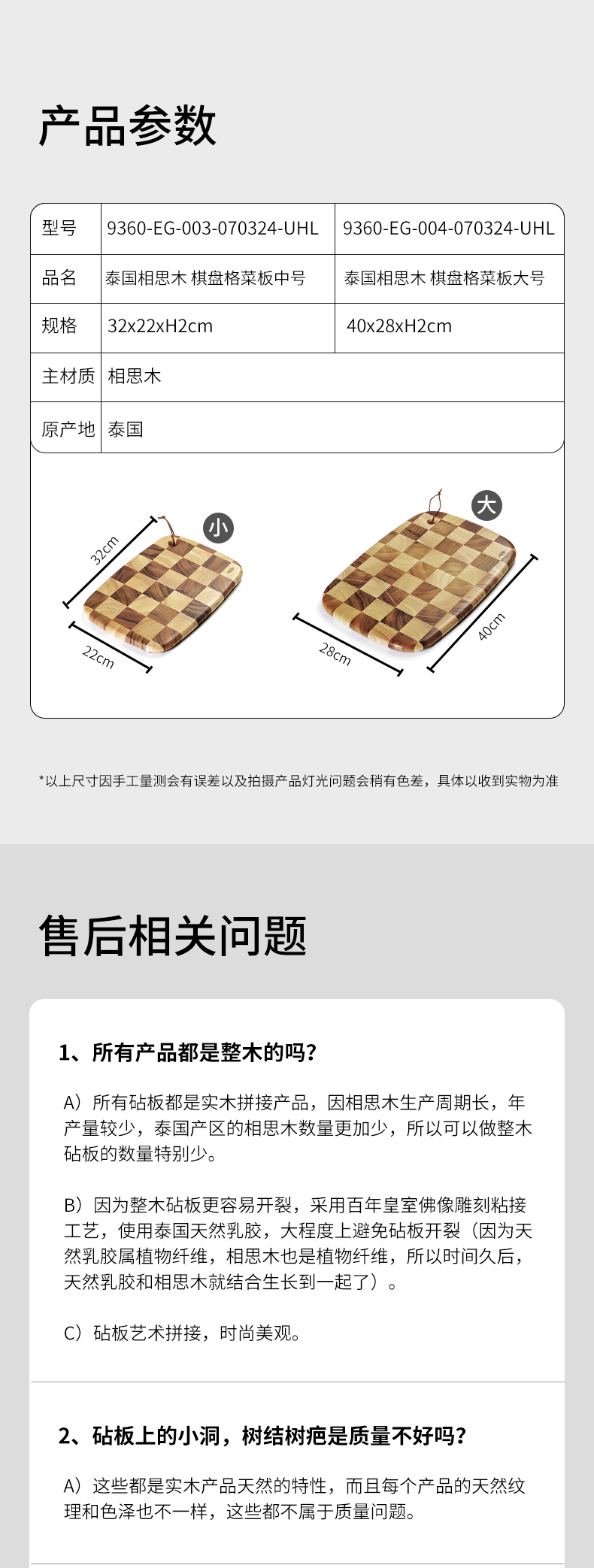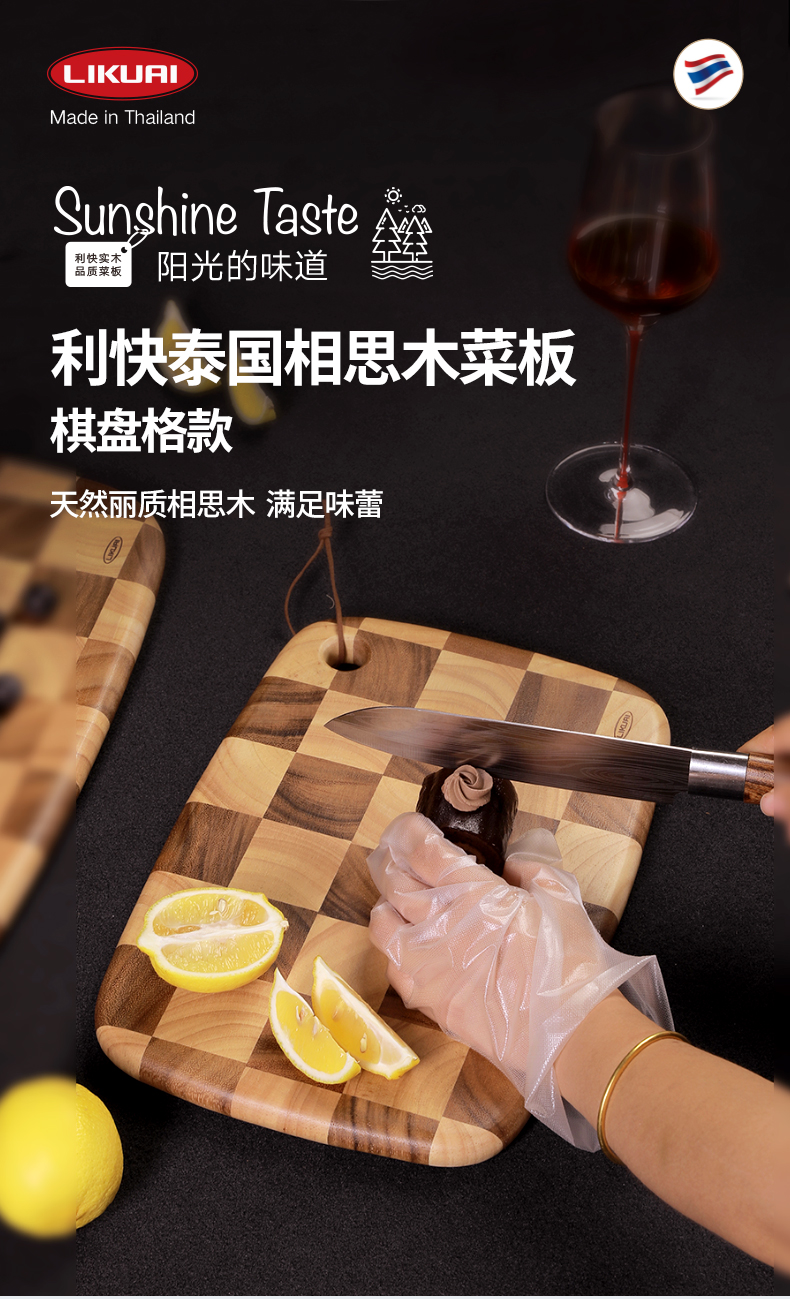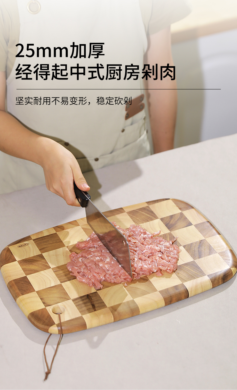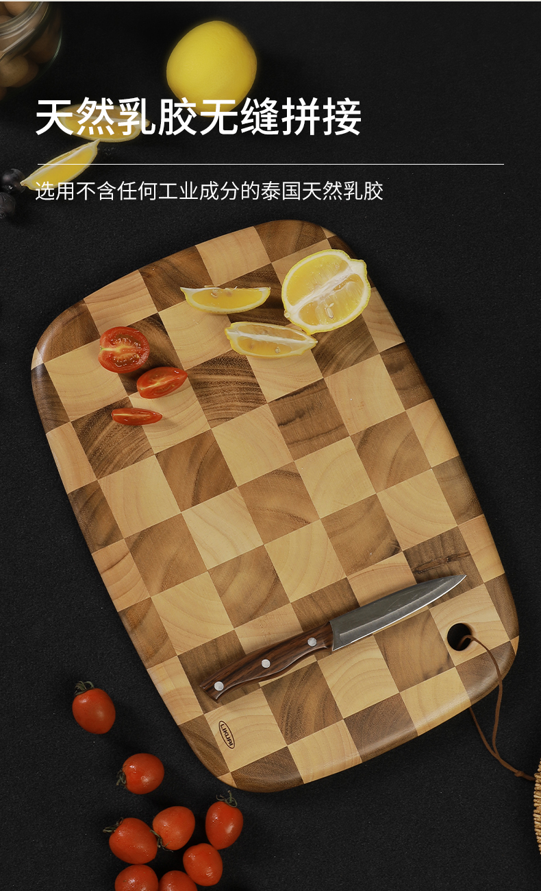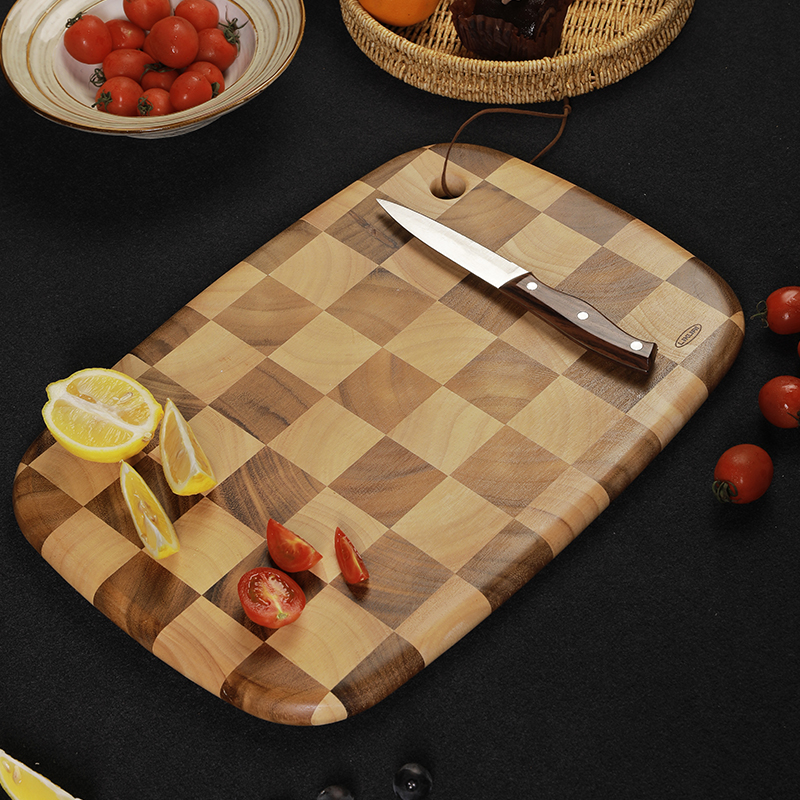 棋盘格 椭圆形泰国相思木菜板大号40*28*2cm