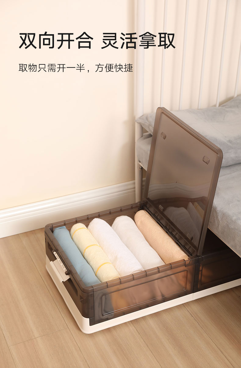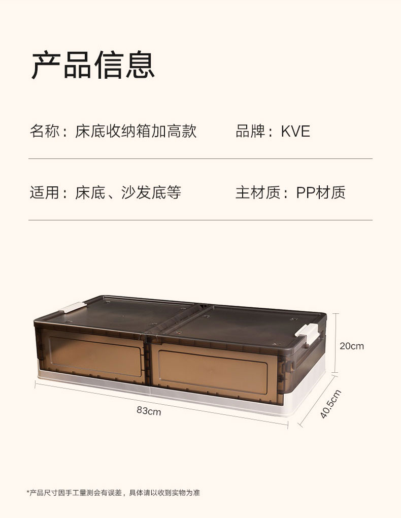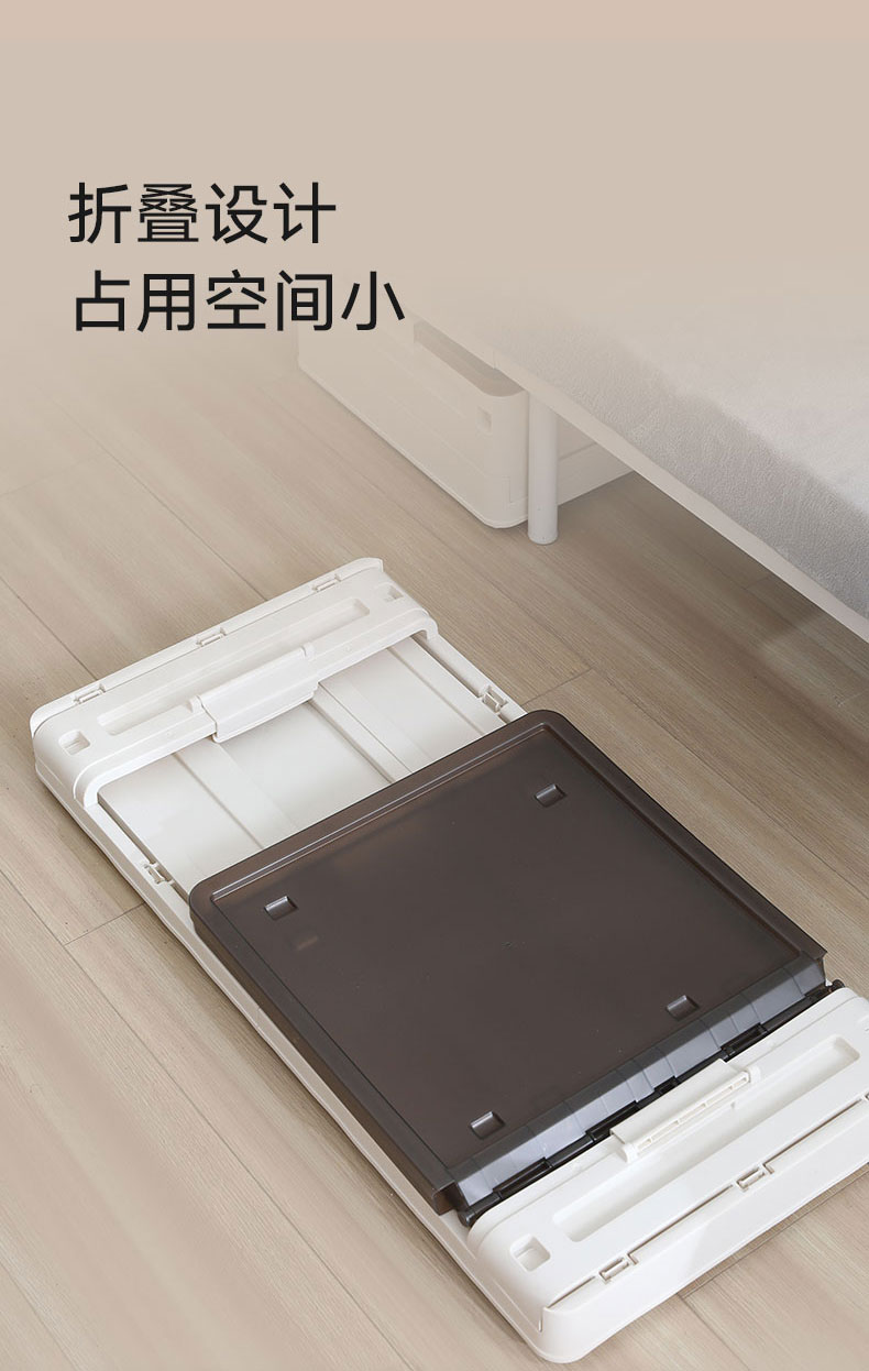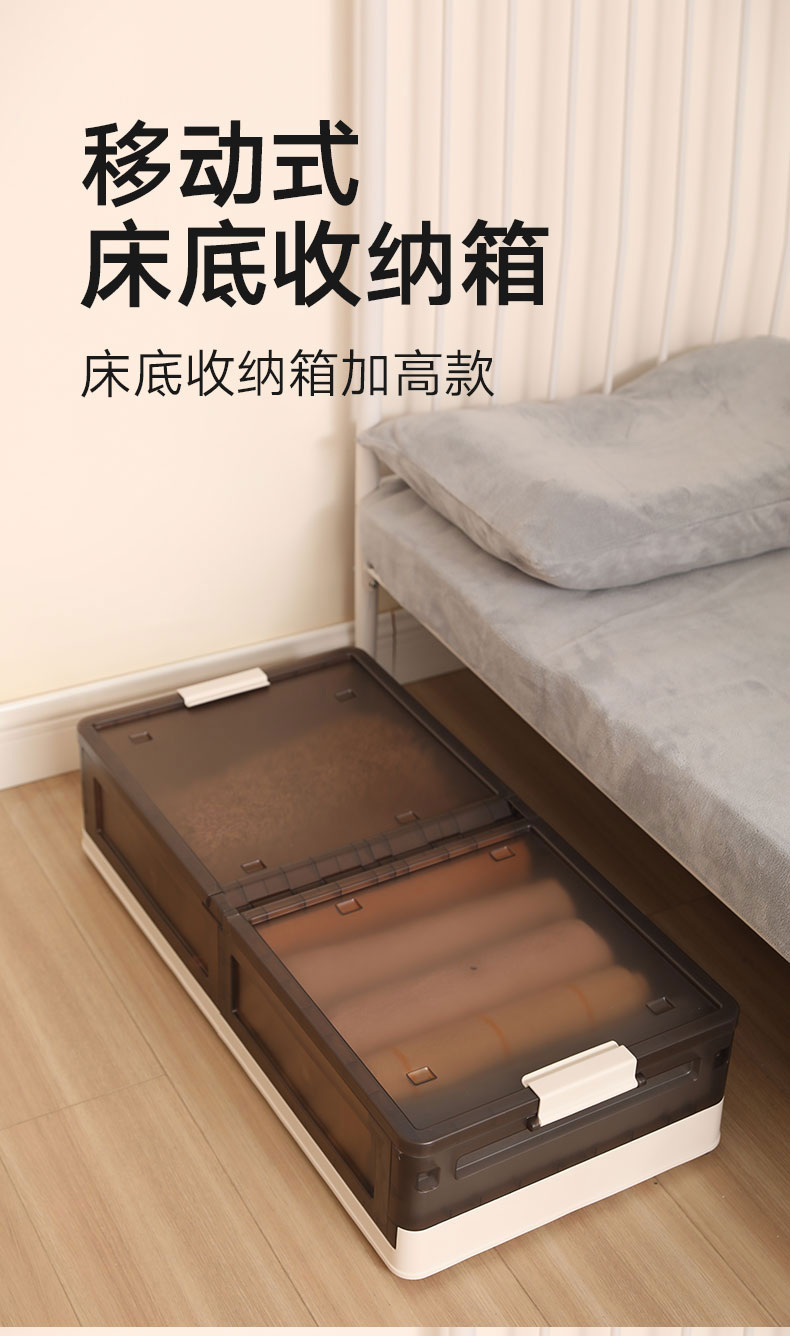 床底收纳箱加高款1只装奶白-透明棕