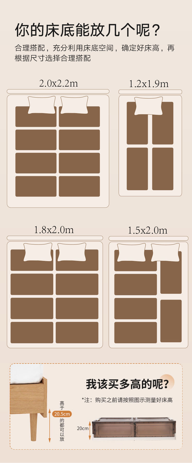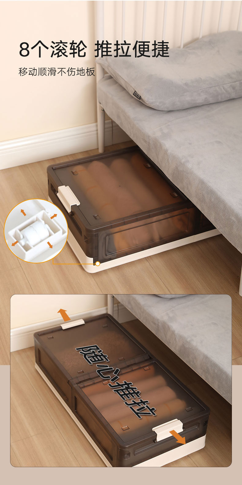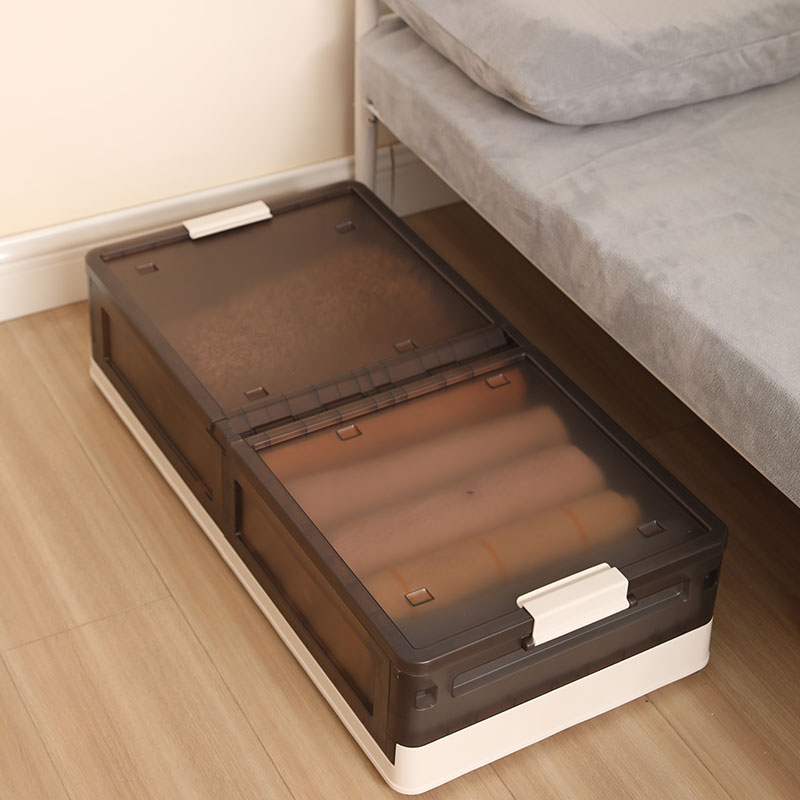 床底收纳箱加高款1只装奶白-透明棕