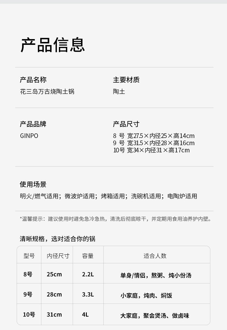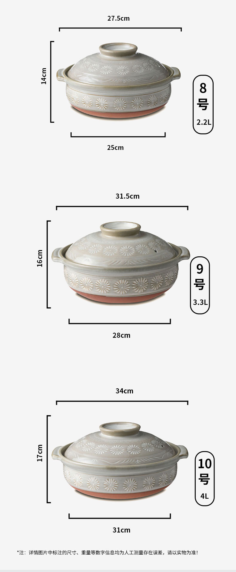 花三岛陶土锅10号4L 34cm x H17cm