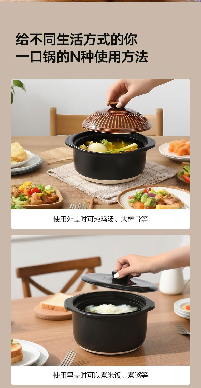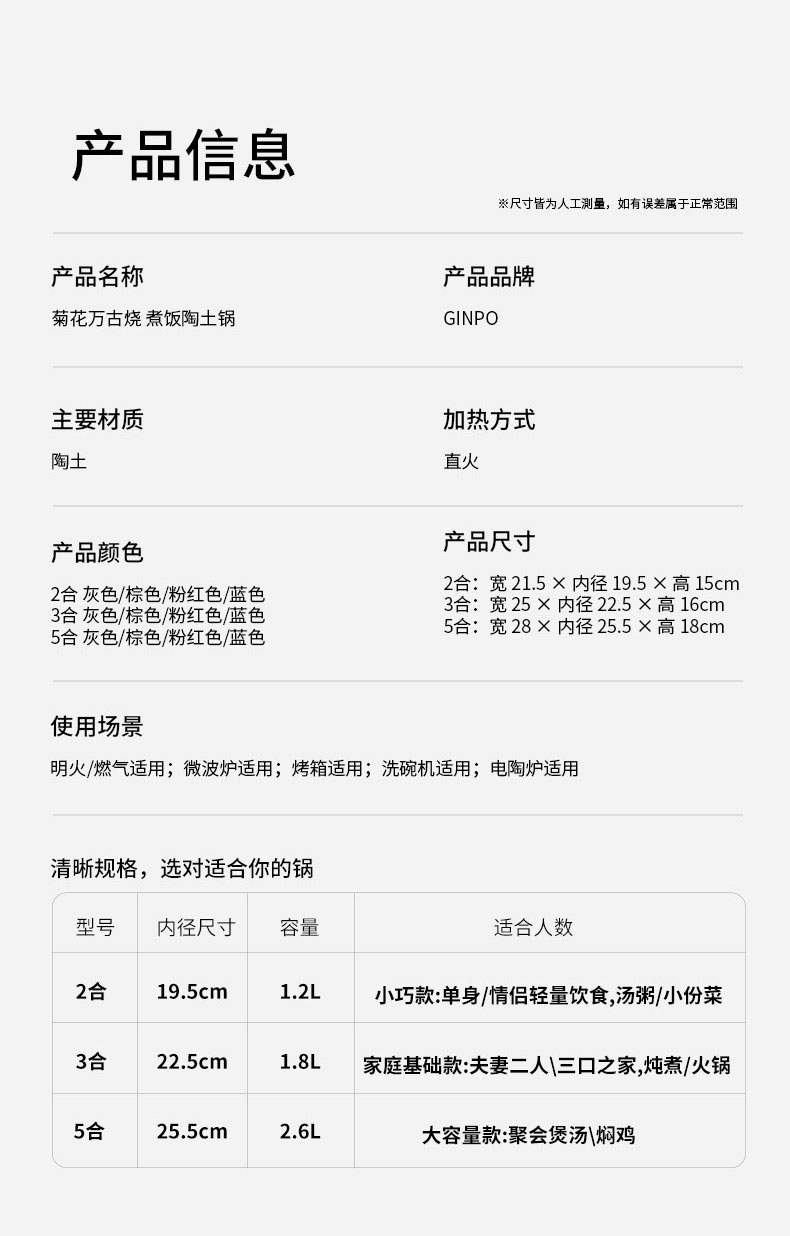 菊花多功能陶土锅 2合 1.2L 蓝色 21.5cm x H15cm