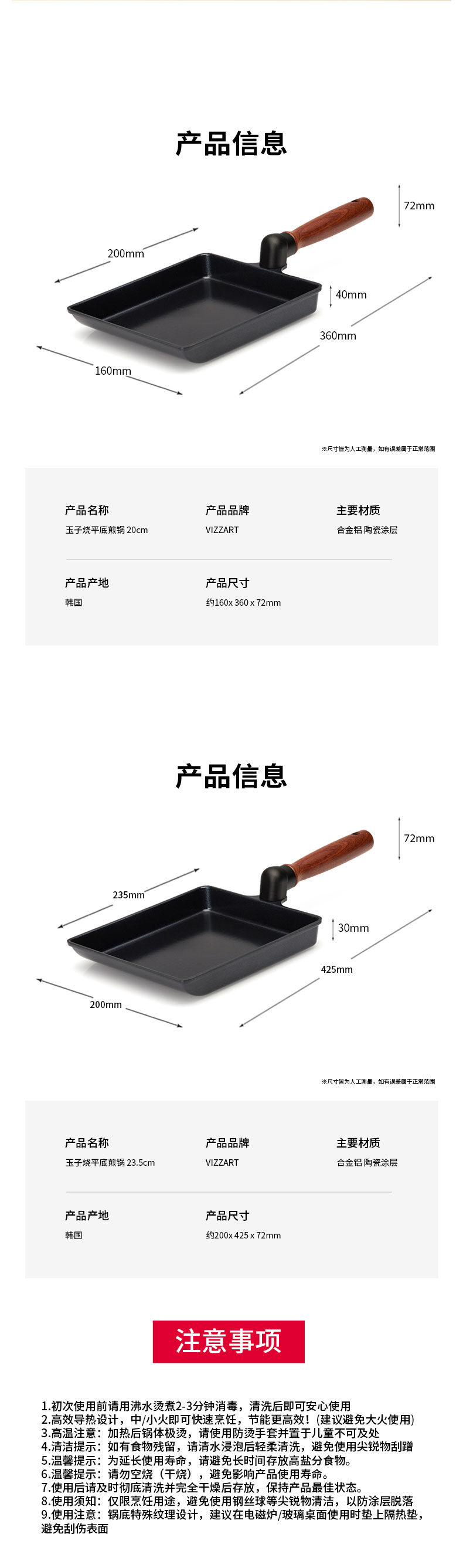 玉子烧平底煎锅 20cm×16cm×4cm